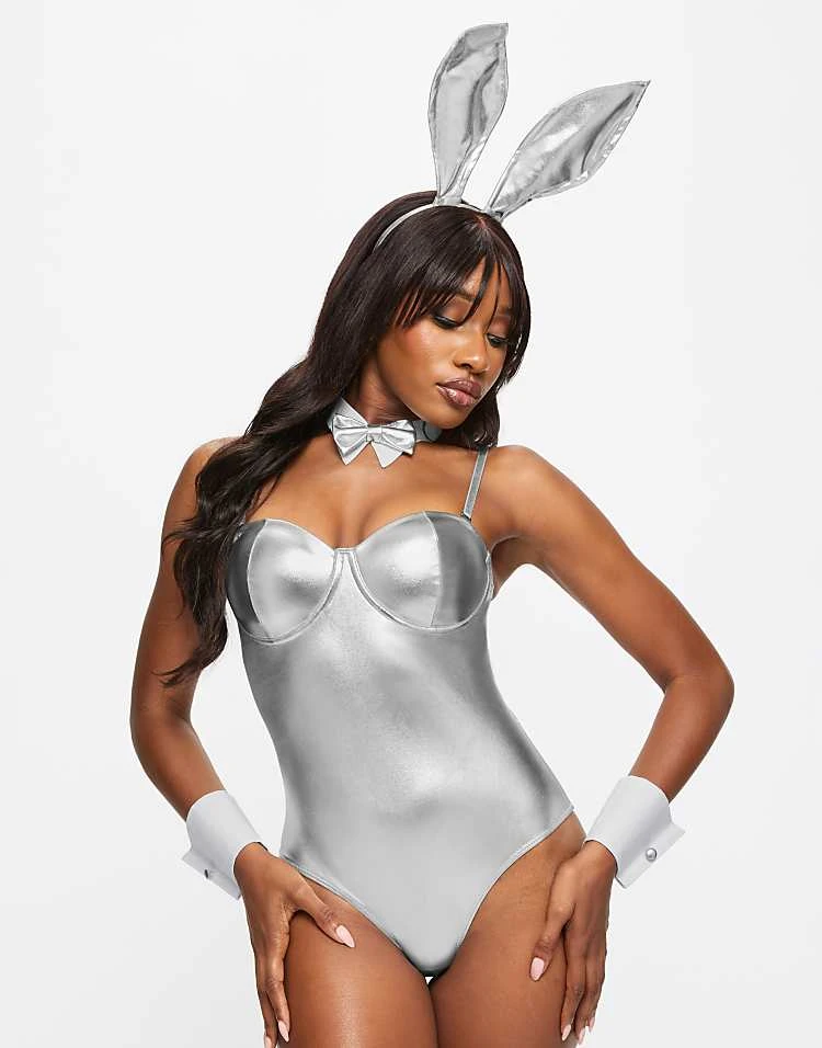 - Includes a bodysuit, headband, bow tie and cuffs