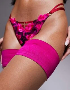 Ann Summers Hero Contrast Floral Embroidered Thong In Black And Red For Women Black/red